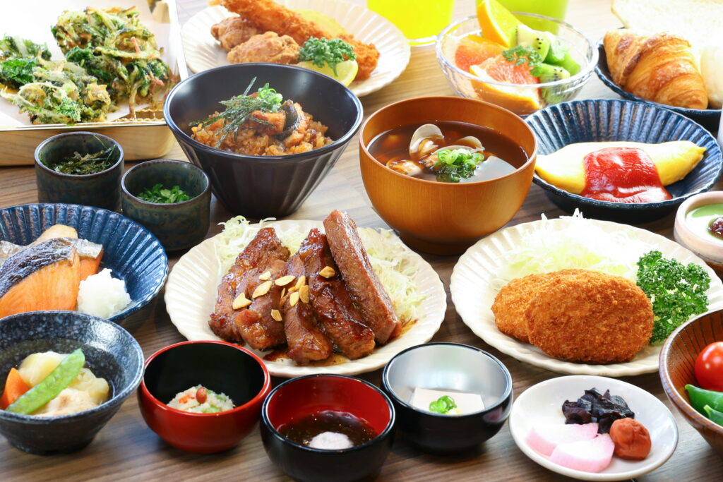 朝食は「四日市とんてき」「松阪牛コロッケ」など約50種類