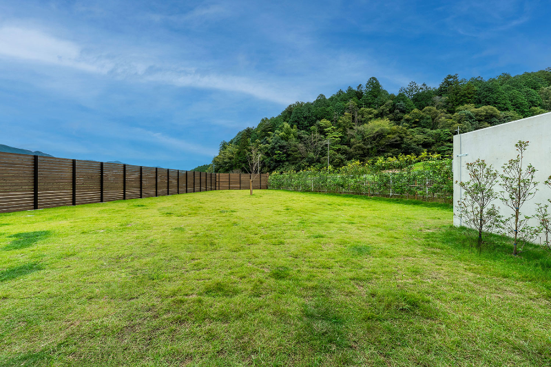 全棟に専用のプライベートドッグランを完備。なかでもスイートヴィラに備えられたドッグランは400㎡を超える広さを誇り、中四国エリア最大級のスケール。完全プライベート仕様のため、他のわんちゃんや周囲を気にすることなく、ノーリードでのびのびと安心して過ごせる環境が整っている。