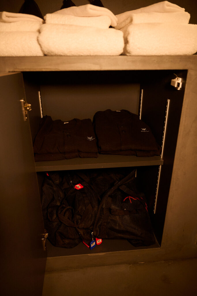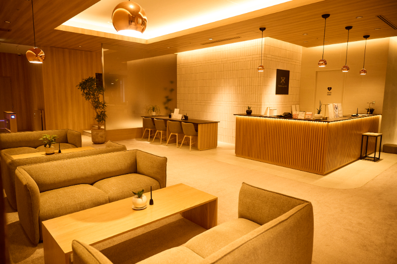 「RR Conditioning & SPA」は3階と4階の2フロア構成。3階は非会員でも利用ができるスペースで、4階は会員のみが利用できる施設が入っています。会員になると、ソファ奥にあるゲートから4階への移動が可能。今回は、非会員でも利用できる3階のプライベートサウナをご紹介します。