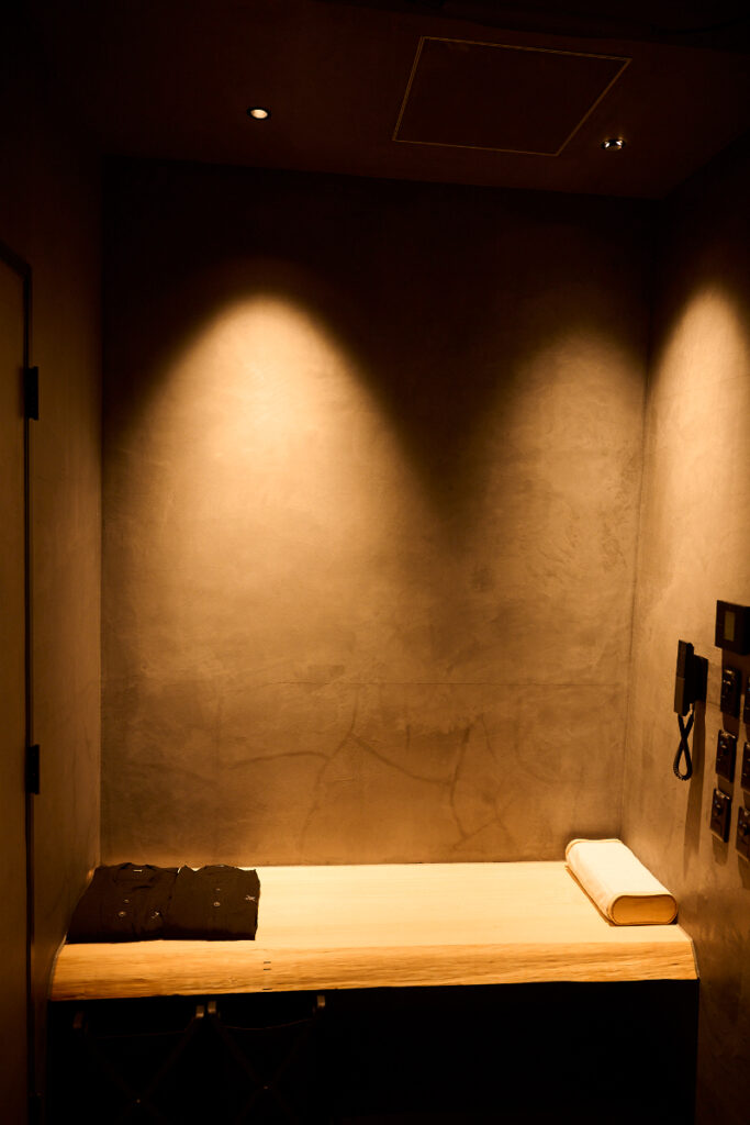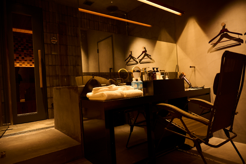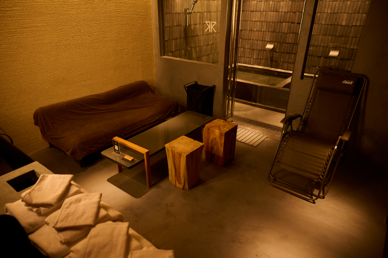 休憩スペースは、一枚板で作られたベンチ。ここに横たわると、日常の雑念が次第に消えていき……とにかくミニマルな空間なので、自分に向き合うにはぴったりです。サウナのセットがすべて一部屋で完結する、ノーストレスさ。まさに“自分の機嫌だけを取るためのサウナ”、そんな表現がぴったりです。