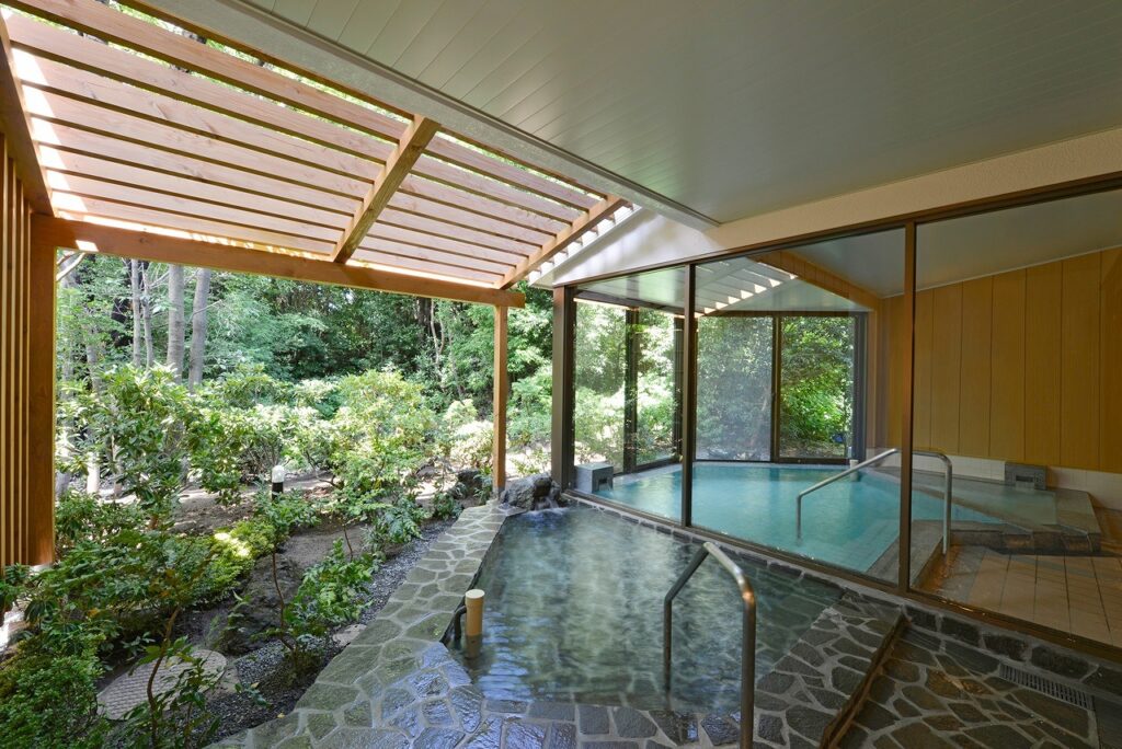 滞在中は、敷地内の天然温泉、大浴場、露天風呂、サウナを利用可能。