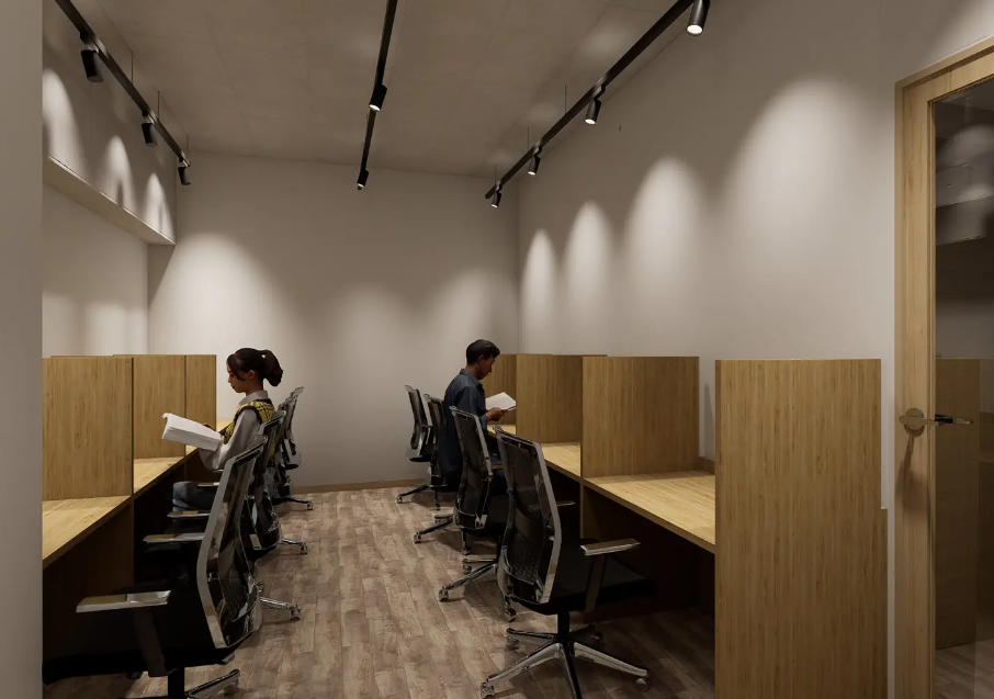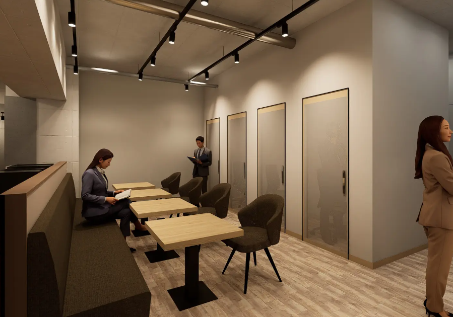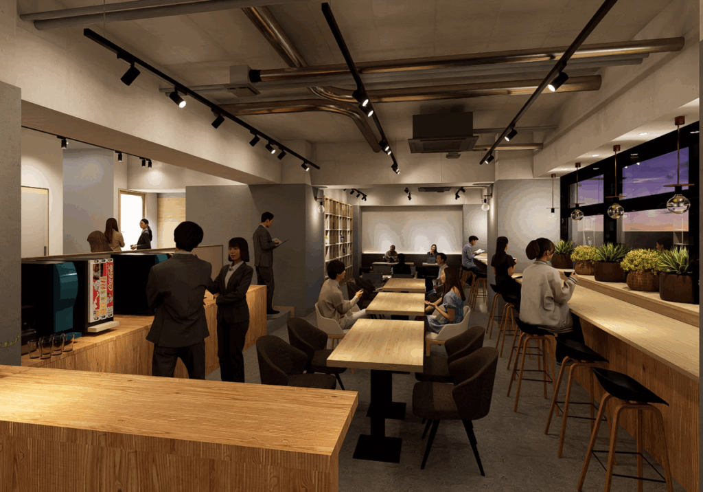 馬場サウナの魅力は、サウナとコワーキングカフェの一体型施設であること。ワークカフェエリアは集中できる個室ブースや、開けたカフェエリアなど4つのゾーンに分かれており、
