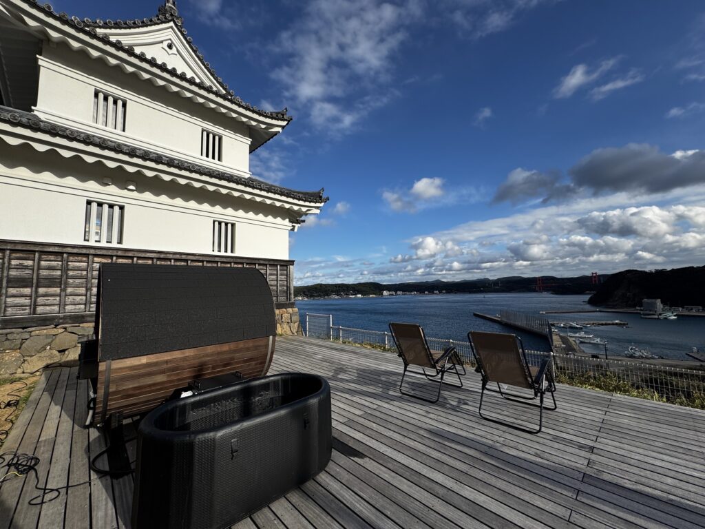 11月1日(土)より、長崎県平戸市にある城泊施設「平戸城 懐柔櫓(かいじゅうやぐら)」のテラスに、日本初の常設”城サウナ”「平戸城 懐柔櫓 CASTLE SAUNA」がオープンする。平戸城は日本100名城のひとつで、現在の天守閣は1962年に復元されたもの。平戸港を見下ろし、三方を海に囲まれるロケーションはまさに絶景だ。