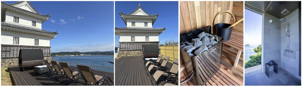 「平戸城 懐柔櫓」に宿泊せず、日帰りでのサウナ利用も可能。日帰りの場合は、1人19,800円(4人の場合は30,800円/1人あたり7,700円)で貸切利用することができる。着替えやシャワーは、「平戸城 懐柔櫓」のバスルームを使用できる。
