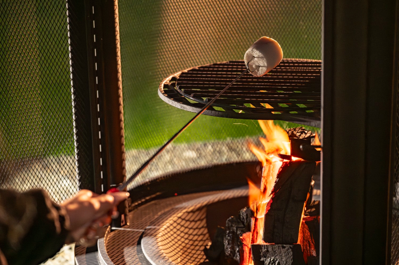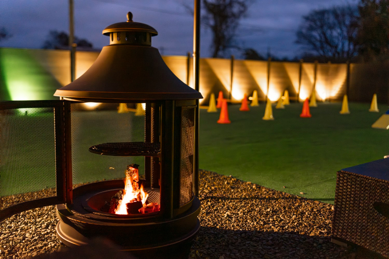 ワンちゃんがのびのび遊べるガーデンスペースでは、夜になると頭上にきれいな星空が広がる。満天の星空の下、焚き火を囲んでゆったり過ごす時間もおすすめだ。琵琶湖の風を感じながら、愛犬と一緒に穏やかな夜のひとときを過ごすことができる。