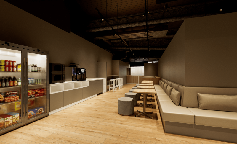 サウナ・岩盤浴以外にも、館内着でゆっくりと過ごせる共用スペースも充実。食事や仕事ができるラウンジのほか、集中したり仮眠したりできるカプセル型の「おこもりスペース」が設置されている。さらに、北海道ならではの銘菓やスナック菓子もフリースナックとして提供され、「暮らすような」滞在をすることができる。