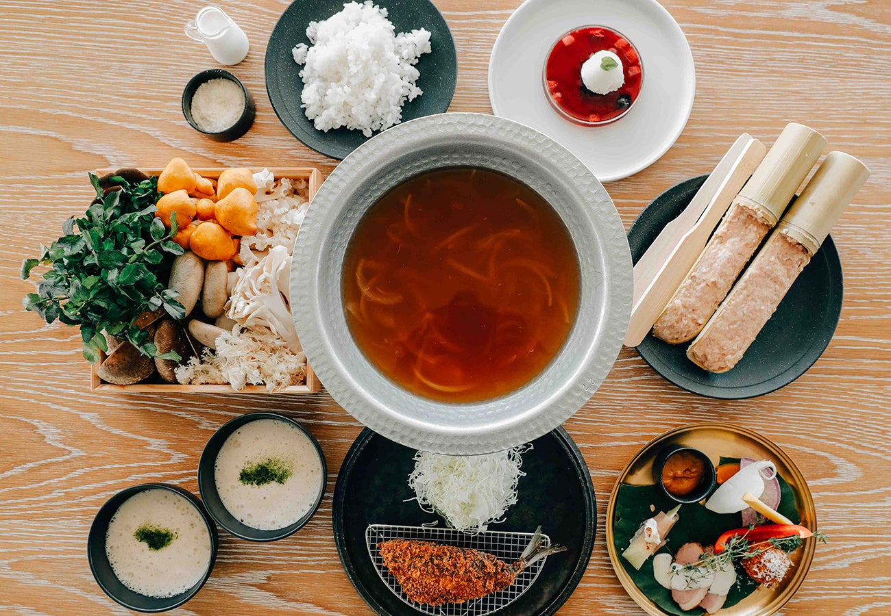薬膳火鍋、しゃぶしゃぶ、とろろ木の子鍋、薬膳タッカンマリから選べる、4種の「HOT POT」は、「BPC」の冬の名物。熱々の「HOT POT」を、前菜からデザートまでコース仕立てで味わうことができる。予約は、チェックイン時まで。
