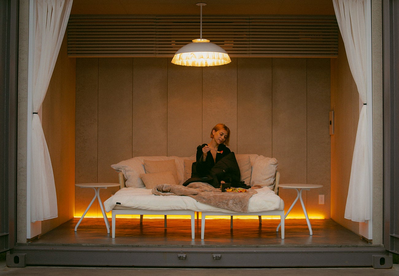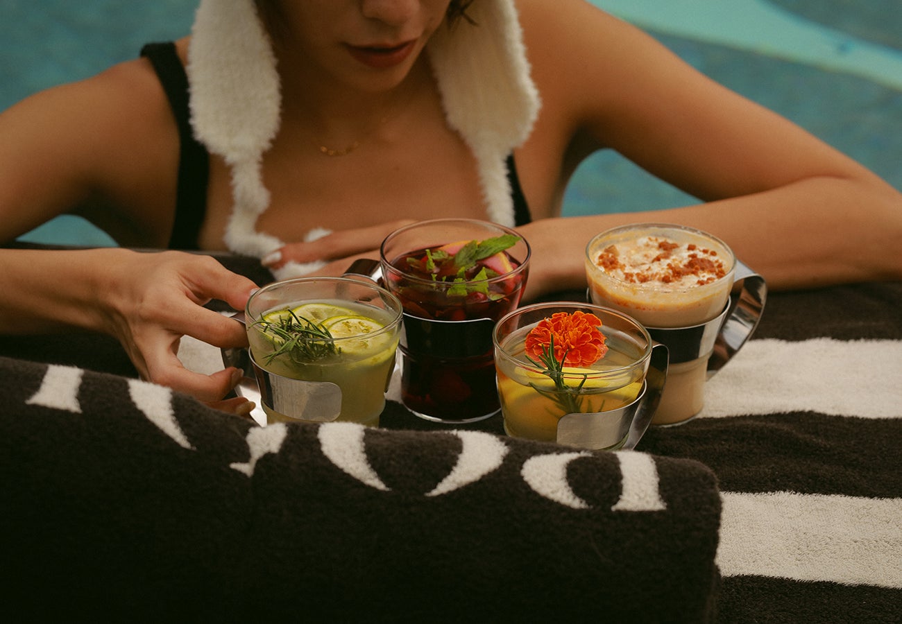 今年は、プールに浸かりながら寝転べる「水上ハンモック」も登場し、温水に浮かんで無重力体験を味わうことができる。さらに、プールサイドでは、冬仕様の暖かいローブ、個別のパラソルヒーター、電気毛布(「POOL HOUSE」「ROOFTOP SEAT」のみ)が設置され、プールから出ても暖かく過ごせる。