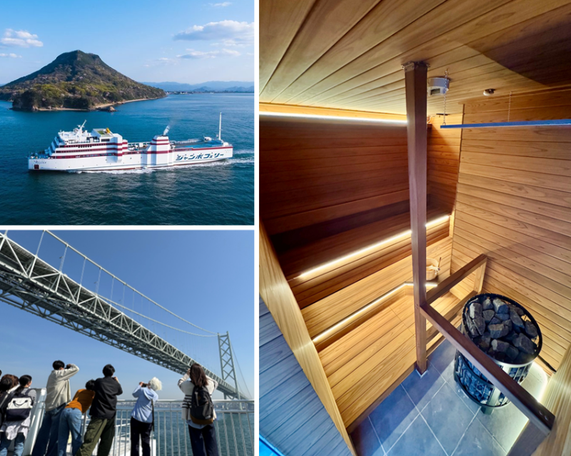 兵庫・神戸~小豆島~香川・高松を結ぶジャンボフェリー「りつりん2」の男性用浴室内サウナが1月19日からリニューアルを発表。瀬戸内海を航行する船の上で、フィンランド式のロウリュ付きのサウナを楽しめる、新たな船旅体験ができそうだ。