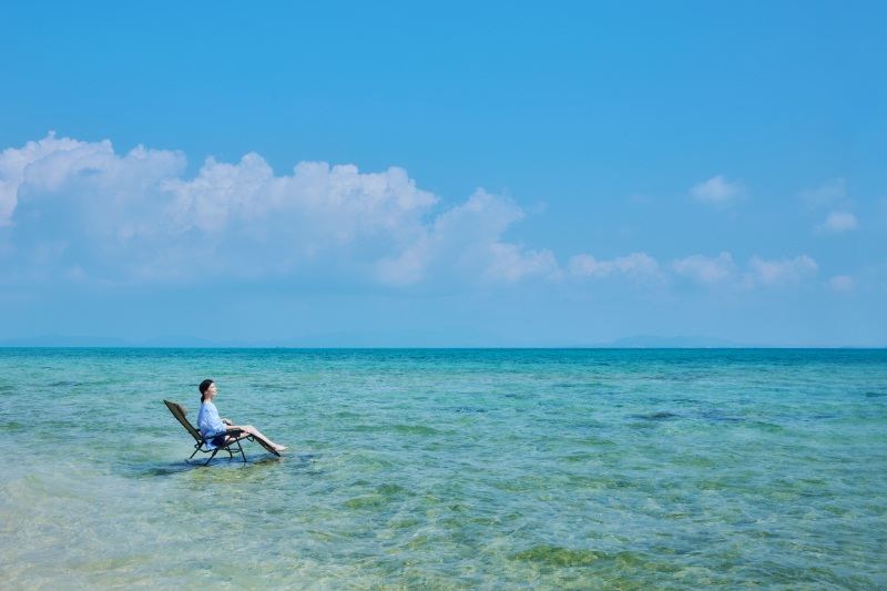 小浜島ゆかりの香りを使ったセルフロウリュや、海風と波音が包む海上外気浴など、離島ならではの没入感を体験できる。