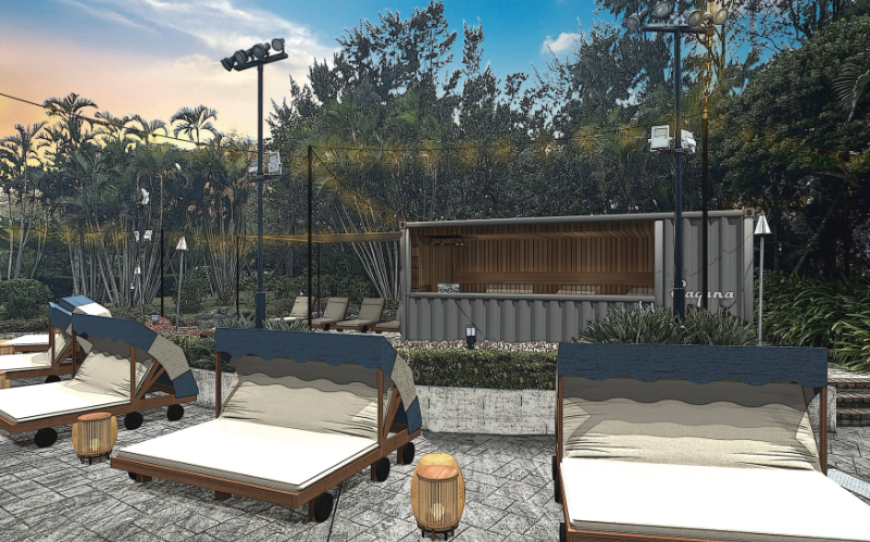 2月にリニューアルするアウトドアサウナエリアは、「リゾート×サウナ」をコンセプトに、広がりのある敷地を生かした開放的な空間設計に。