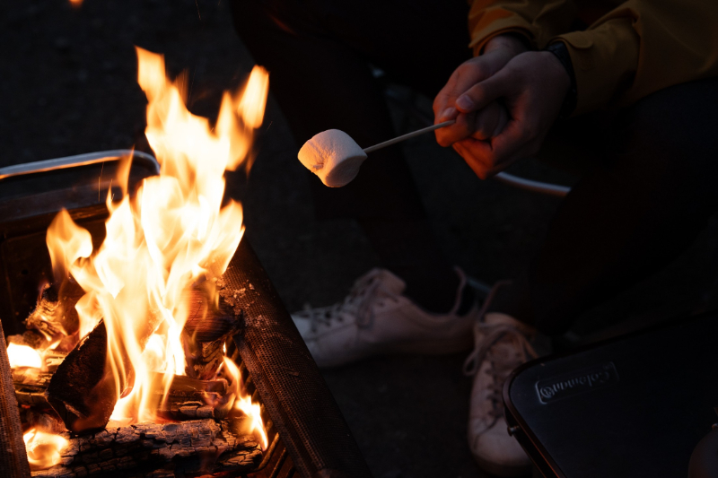 サウナ・キャンプの各アウトドア有識者がステージで熱いトークを繰り広げる「トークセッション」や、全国から選りすぐりのサウナグッズを販売する「サウナマルシェ」、キッチンカーも登場。さらに、キャンプ・BBQエリア(キャンプ練習場 campass)では、焚火・マシュマロ焼き体験も。