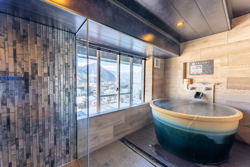 信楽焼の半露天風呂を備えた客室を新設し、越後の天然温泉をプライベート空間で楽しめる設えとした。周囲を気にせず湯浴みができる点が特徴である。客室内にはReFaのアイテムやJILL STUARTのアメニティーを完備し、上質な滞在体験を提供する。