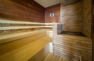 サウナ室は、レンガ調でこぢんまりとした1〜2名ほど入れる大きさなので熱のまわりが良く、温度は常に80〜90度に設定されている。周りを気にせず好きな体勢で熱を受けることができるのも、完全予約制の良いところだ。そのほか、サウナマットやサウナハット、サウナタイマーが完備されている。