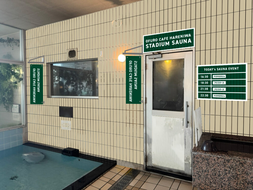 ハレニワの湯では、男性サウナ室で毎日(平日は21:30、土日祝は、18:30・21:30の2回)アウフグースを開催している。参加には、当日10:00よりフロントで配布する整理券が必要。