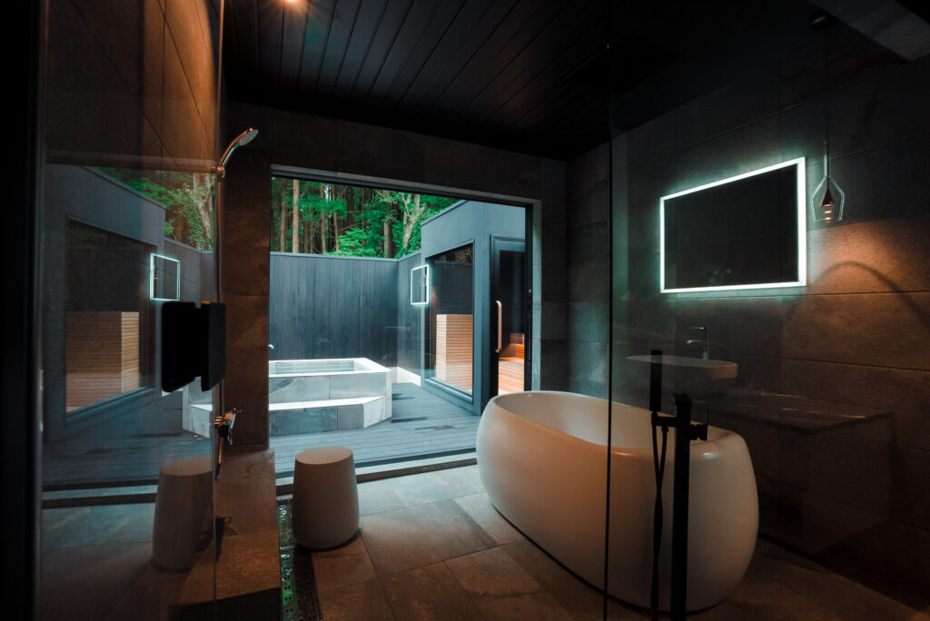 施設は全2棟で構成され、Mt.1は広がる景色と建築美を楽しめる棟、Mt.2は折紙の精神を取り入れた精緻な空間で、歴史や文化の層を感じながら静かに滞在可能。どちらの棟も、一棟貸しならではのプライベートな環境で、周囲の喧騒から離れた落ち着いたひとときが提供される。
