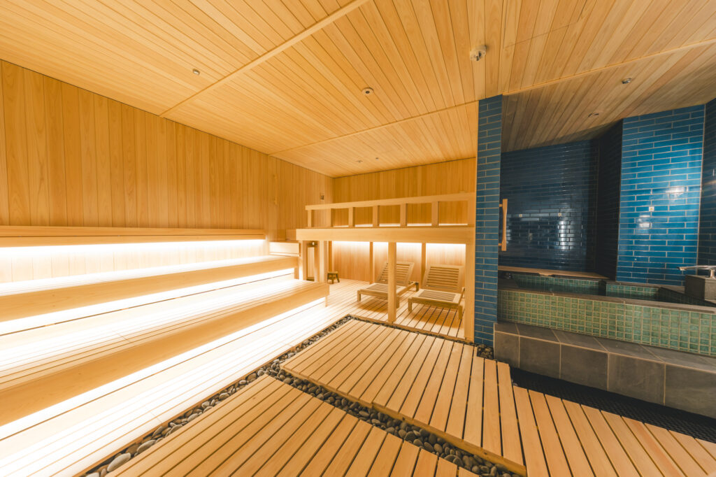 「もくもく」は、静寂を楽しむ“黙浴”専用のサウナ室で落ち着いた照度に設定されている。セルフロウリュによる音や蒸気、湿度の変化に集中できる特別な空間だ。