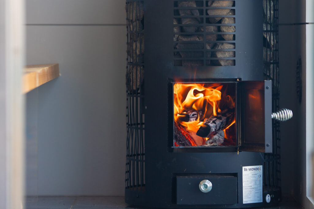 薪が爆ぜる音と香り、やわらかな遠赤外線の熱が身体を芯から温め、静かな没入体験をもたらす。