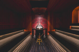 薪が爆ぜる音と香り、やわらかな遠赤外線の熱が身体を芯から温め、静かな没入体験をもたらす。