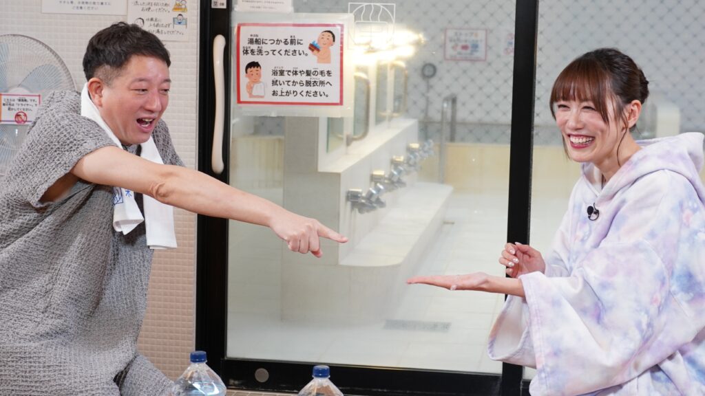 オープニングでは、高橋から「MXで100回目っていうのは、キー局の1000回目と一緒」と今回がいかに特別であるかの説明が。そんな記念すべき放送回にふさわしいゲストは、サウナでの“ととのい”シーン初公開となる、ももクロの高城れに。初めての銭湯での撮影に、やや緊張の面持ちからスタート。