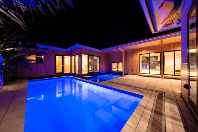 千葉県南房総市に、和モダンと琉球文化を融合させた一棟貸し高級ヴィラ「蒼望楼concept琉球」がオープンした。運雄大なオーシャンビューを背景に、琉球石灰岩を贅沢に用いたリビングや水盤テラス、南房総温泉、温水プール、サウナ、冷暖房完備のBBQ棟を備え、飛行機を使わずとも南国リゾートの開放感を味わえる滞在を提案する。