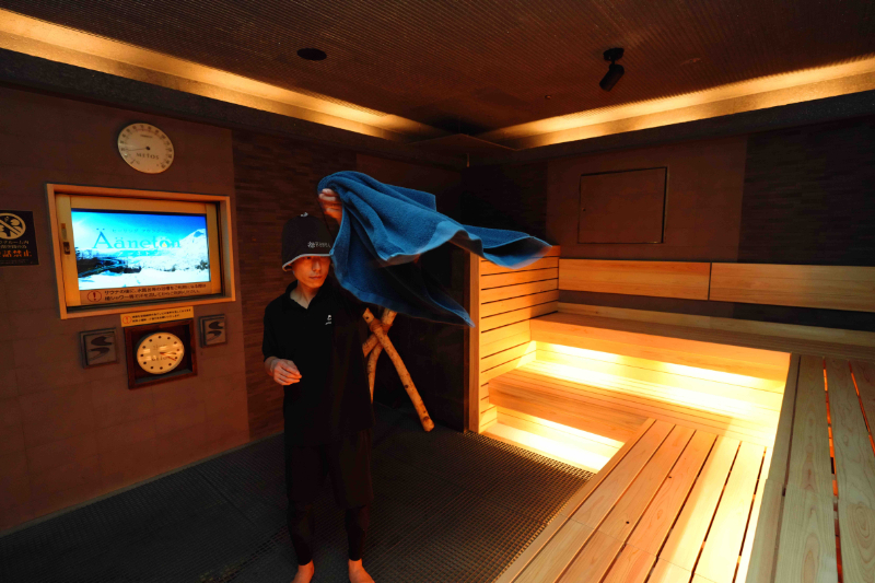 男性、女性それぞれのフィンランドサウナ室では、北海道産ラベンダーをブレンドしたアロマや、北海道でよく飲まれているとうきび茶を使用したアウフグースイベントを開催。さらに、日曜日限定で参加者に、外気浴の際におすすめな(北海道のスキンケアブランドの)ナチュラルアイランドの「自然な、めぐりジェル。」の配布も。