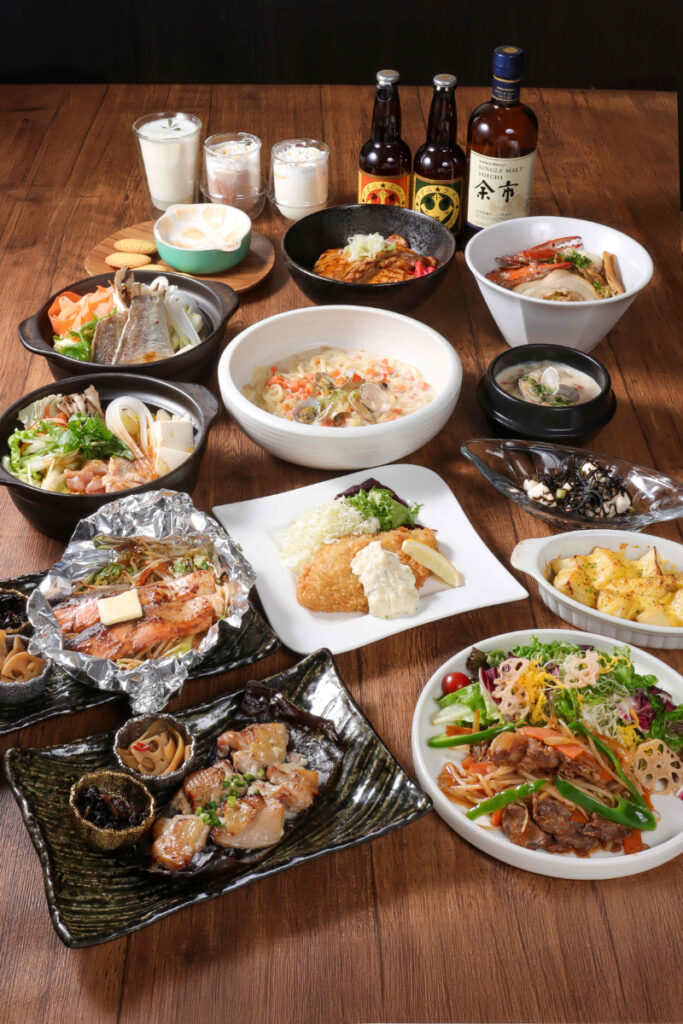レストランでは、彩りサラダのプレート「ジンギスカン」(1,950円)や鶏もも肉の昆布締め定食(1,950円)、スープカレー鍋(1,800円)など北海道の味覚が並ぶ。ドリンクには、余市シングルモルト(1,080円)やヨーグルトスムージー(800円)の提供も。