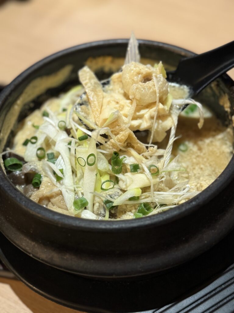 9/1(月)~10/13(月・祝)には、「牛モツとキノコの豆乳煮込み」が提供される。牛モツと秋のキノコの旨味に、豆乳と白味噌、そして九州醤油を使用した季節感のあるスープが特徴。