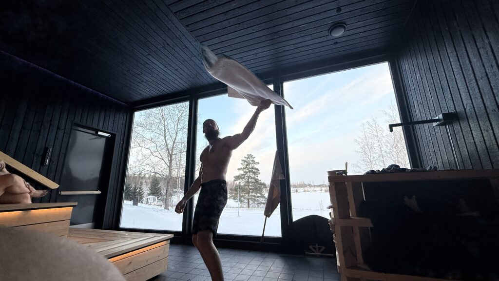 イカーリネン スパ アンド リゾートはサウナ界隈の方々には有名なフィンランドのサウナ首都でお馴染みのタンペレから更に約45分北西に車を走らせた先にある。まさにフィンランドらしい美しい湖畔に位置する大型のホテルだ。2025年にフィンランドではじめてアウフグースが体験できる新エリア「UTU」がオープンした。アウフギーサーが常駐するはじめてのフィンランドのサウナ施設だろう。1月末の週末、フィンランドのサウナ界に新しい風を起こしているイカーリネンで、初めてのサウナの祭り、世界最大級「ウインターサウナカーニバル」が盛大に行われた。