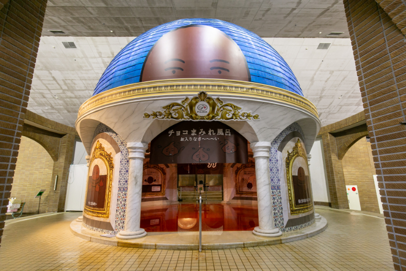 ミルキーの香りを再現した「ミルキー風呂」と、”こころも体もチョコまみれ”をテーマにした「カントリーマアム チョコまみれ風呂」の2つのコラボ風呂が登場する。