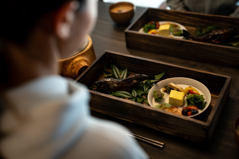 里山の恵みを味わう朝夕食と、自由に使えるキッチン