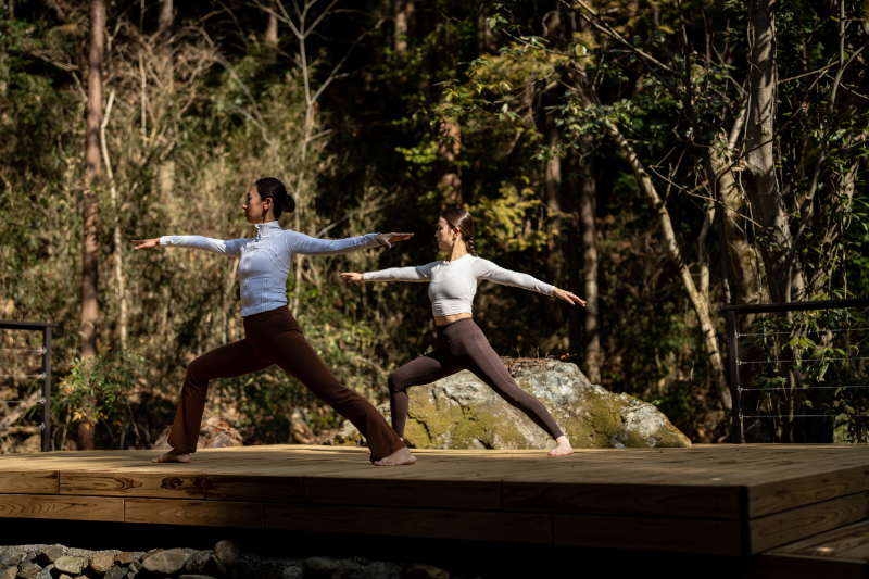 デッキテラスでは、ヨガや瞑想などのアクティビティも可能としている。加えて、専用庭にプライベートな焚き火スペースを備え、火を囲む時間も滞在体験の一部に組み込む。