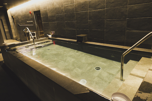 水風呂が、これまた広くて快適! 深さもおよそ90センチほどはあるでしょうか。いちばん冷やして気持ちいい後頭部を含めて、全身を一気にクールダウンすることができます。ちなみに、しっかり汗を流せば、潜水もOK!