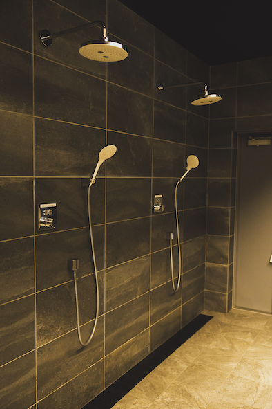 ギリギリまで自分を追い込むタイプの人って、勢いよく飛び出したりしますが、新たに入室する人との「出会い頭」的なアクシデントも、ここでは存在しないわけです。そして出口からすぐの場所に汗流しのシャワーが待っています。つくづくノンストレスな動線なんですよね。