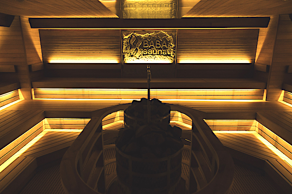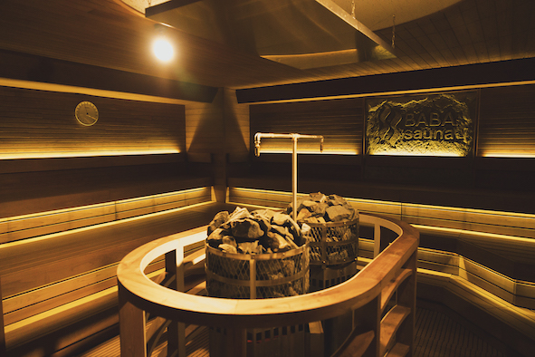 室内はおよそ80℃台の温度ですが、それとは思えない体感温度。20分ごとの(毎時00分、20分、40分)オートロウリュがかなり強力で、ダブルストーブにたっぷりと水が降り注ぎます。かつ、1〜2時間おきにアウフグースイベントも。
