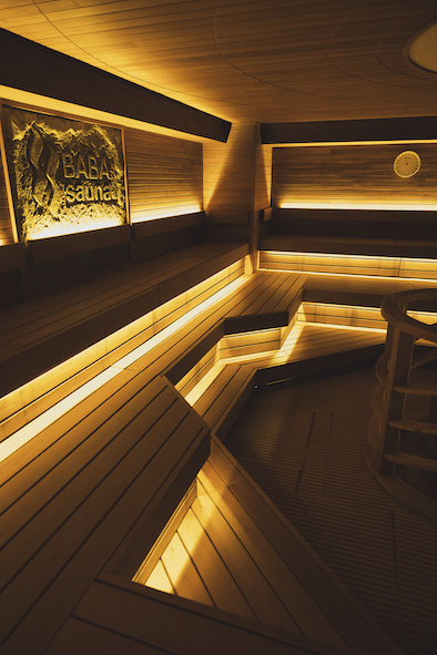 中でも、本当に魅力を感じるのが、2基のパワフルなタワーストーブが中央に鎮座する、広いサウナ室です。