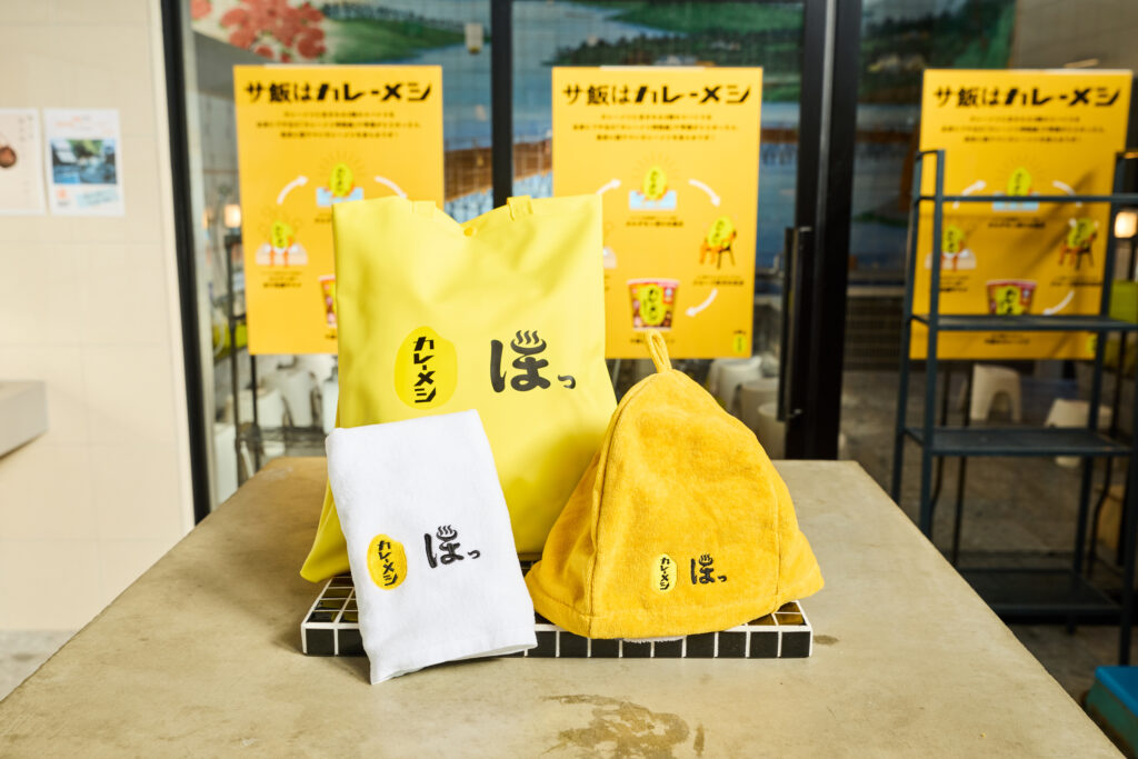 本イベントを記念し、「カレーメシ」と「堀田湯」のロゴをあしらった限定コラボグッズが店頭で販売。