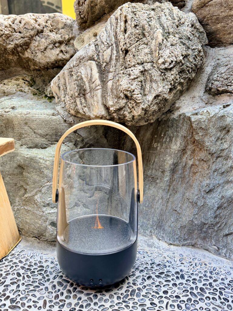 体を冷やしたあとは外気浴へ。外気浴スペースでは、ランタン型のディフューザーからクローブの香りがほんのりと漂う。甘く、少し土っぽさも感じるその香りは、どこか落ち着きを与えてくれる。