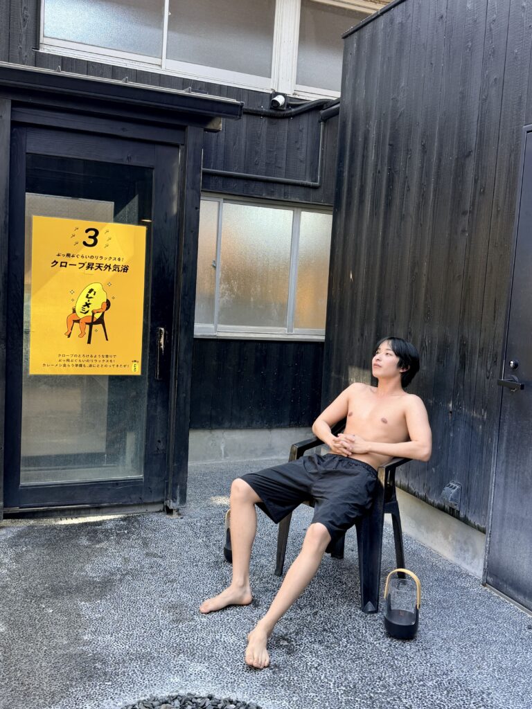 外気浴でゆっくりと体が整い、心も落ち着いていく。サウナめしを迎える準備が、ここで整う。