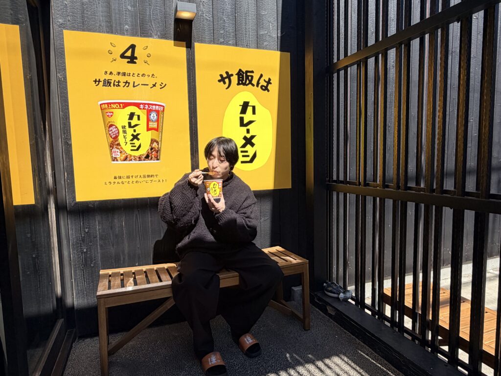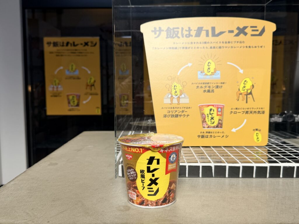 2026年3月7日(土)〜20日(金)の期間限定で開催されているのは、日清食品の『カレーメシ』とのコラボレーション企画。サウナ、水風呂、外気浴という一連の流れのなかにスパイスの香りを取り入れ、「最高の状態でカレーメシを食べる」ためのサウナ体験が用意されている。