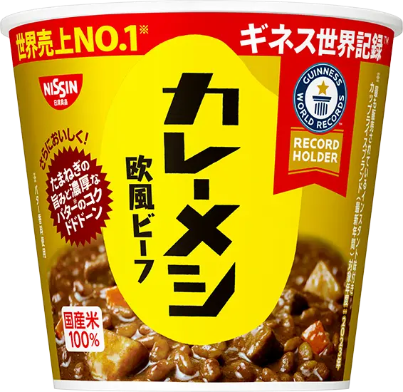 『日清カレーメシ 欧風ビーフ』は、ビーフとたまねぎの旨みに、コリアンダーやカルダモンなどのスパイスをきかせた濃厚なルーが特長。お湯を注いで5分待ち、ぐるぐるとかき混ぜるだけで、香り豊かなカレーが完成。