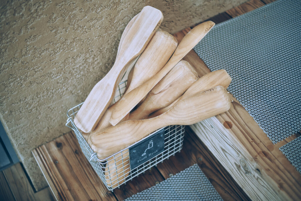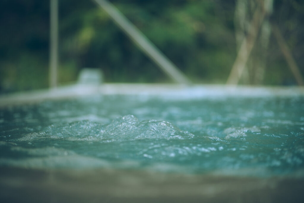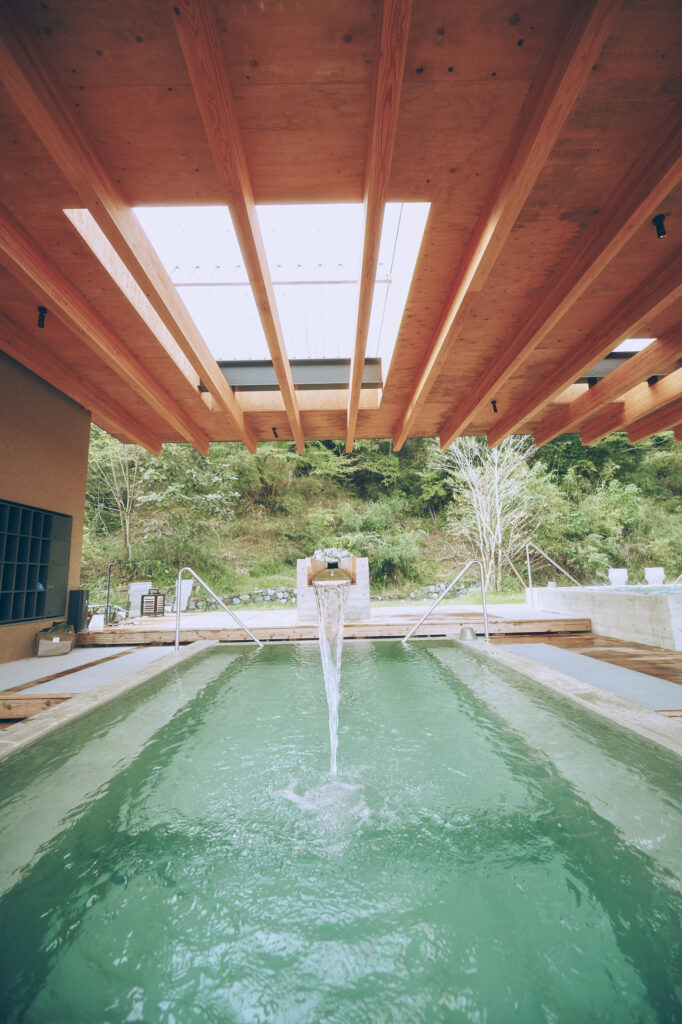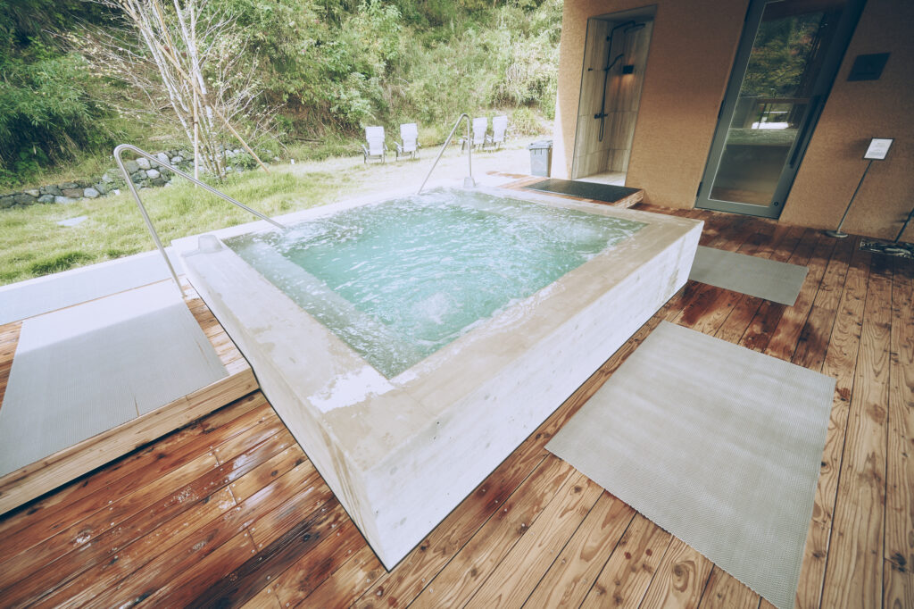 冬はジャグジー付きの温浴槽に。取材時は、ぽこぽこと気持ちよい泡が立ち上る温かいお風呂として稼働していました。里山の原風景に包まれながら、ぼ〜っとジャグジーに浸かるひとときは格別で、「永遠に入っていられそう…」という気分に。仕事のことをぼんやり考えたり、夜ごはん何食べようかなあと考えたり。思考がゆるやかにほどけていくのを、自然と一体になりながら味わうことができます。