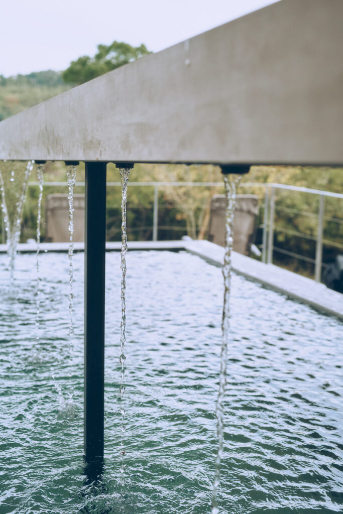 この水風呂は、近くの名水「滝の不動尊」をモチーフにしたもの。竹のレールから落ちてくる湧水を浴びると、体に残った熱がスーッと抜けていきます。