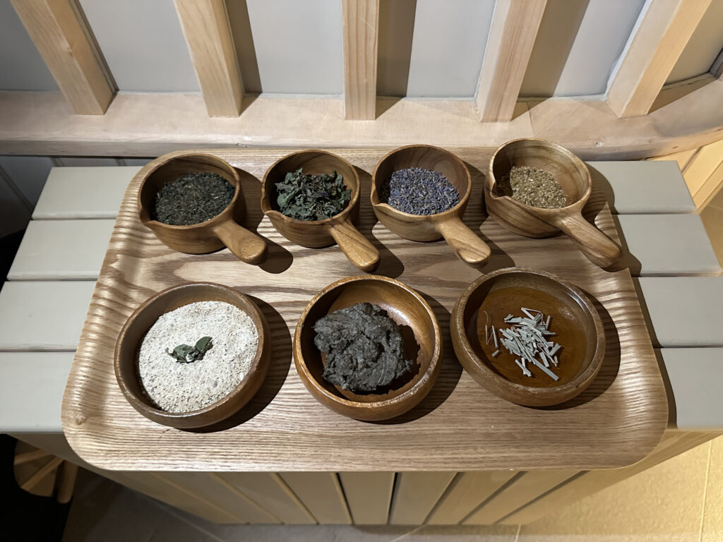 「Maali」では、スクラブ、泥、ハーブなどを使用した、高輪SAUNASが独自に開発したリトリートが楽しめます。定期的に行われるリトリートは要予約制だが、それ以外は通常開放。特注されたヒノキのイスの肌触り……たまりません!