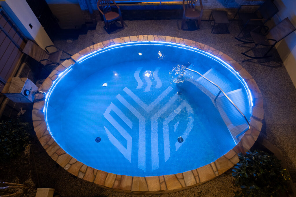 屋外には、温水プールに水風呂、ほっと一息つける温かい「くつろぎ湯」が完備されています。水風呂で熱った体をしっかりと冷やすのもいいですし、子どもはもちろん大人まで楽しめる温水プールでのんびりするのも、外の空気を感じながら、温かいお風呂でくつろぐのも◎。さまざまな過ごし方ができます。