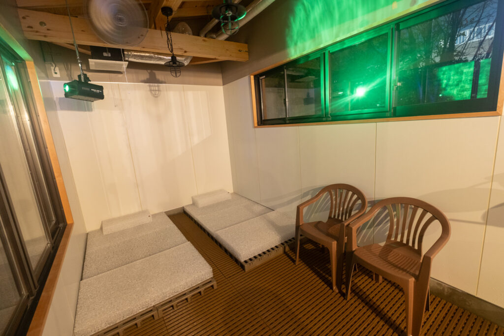 なんと言ってもこのサウナ室のメインは、DMX照明を使った演出や音響システムを駆使したアウフグース。毎時間音楽と共に熱風を送り届けてくれます。もうすでにご存知の方も多いかと思いますが、YUBUNE SAUNA PARKの店長はあの「ユーシましも」さん。世界大会でも活躍するハイレベルのアウフグースが楽しくそして心地よく味わえちゃいます!