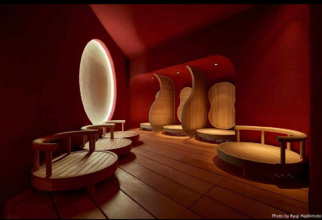 低温サウナは室内の座面に段差がありません。床にクッションが設置されており、赤のライトが異空間にいざなう感じ。地球核のマントル内にいるような…(もちろん行ったことないけど)。低温ですが一定間隔でオートロウリュされて湿度もあるのである程度長く入りながら体への負担なく汗をかけて、良き良き。
