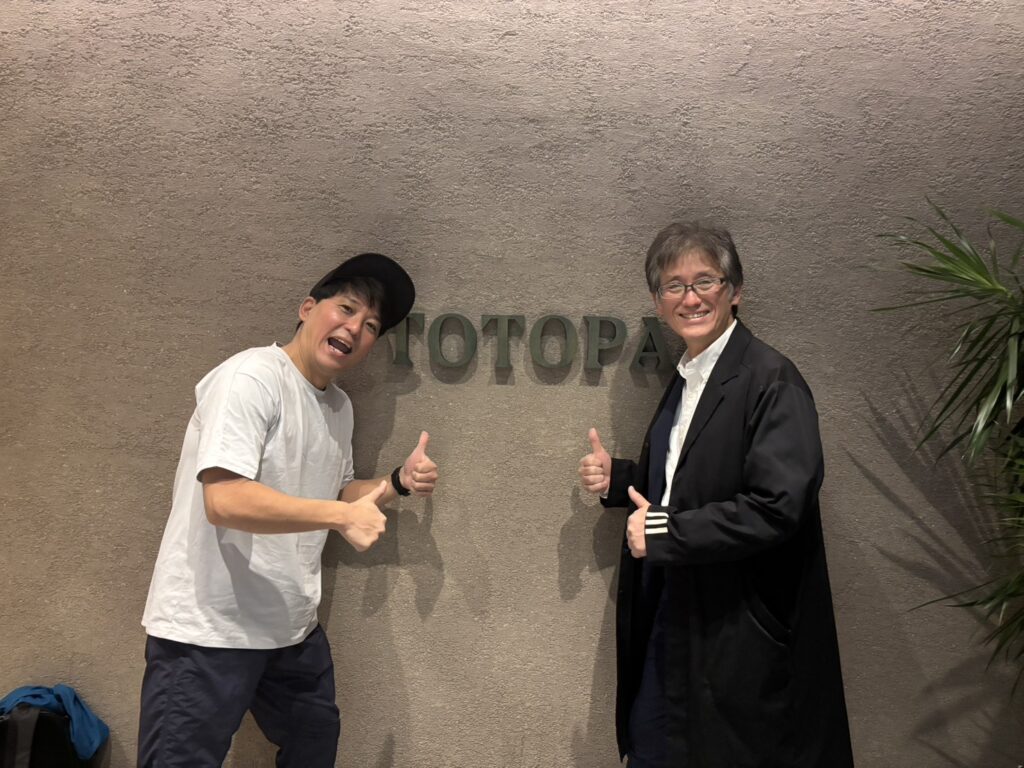 あまりにもTOTOPAが良すぎて、荒川さんと行った後、一カ月以内に2回も人を連れて行っちゃいましたからね(笑)。その内の一人がフィンランドリーグ現役サッカー選手の田中亜土夢くん。僕がフィンランドへ行った時、空港まで迎えに来てくれて、フィンランドのサウナ施設を色々案内してくれた、まさに僕のサウナ師匠です。フィンランドリーグは、現在シーズンオフで、オフ期間を利用して久々日本に帰国していました。3年ぶりの再会だったのですが、やはり亜土夢くんとは一緒にサウナ行きたいなーと考え、迷わずTOTOPAに誘いました。その日の夜に会食があるということで、夕方から行ったのですが、TOTOPAのトークOKなサウナ室のおかげで募る話をたくさんできました。時間としては、3時間くらいしか一緒にいられなかったけど、それを補う濃度をTOTOPAで持つことができましたね。亜土夢くんも「今まで日本になかったタイプの施設。TOTOPAいいですね!」と絶賛してました。